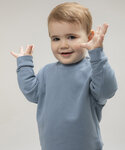Kids sweatshirt made in sustainable fabric with self-fabric knitted rib at neck and cuffs. Flatlock V stitching detail at CF neck. YKK popper fastening on shoulder on sizes 0/6 – 24/36 only. Tag-free. . SEDEX certified. BSCI certified. Oeko-Tex certified.